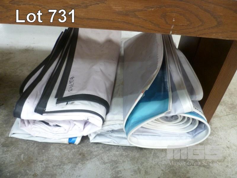 5 x ASSORTED, HEAVY DUTY ADVERTISING TARPS, UNKNOWN SIZES