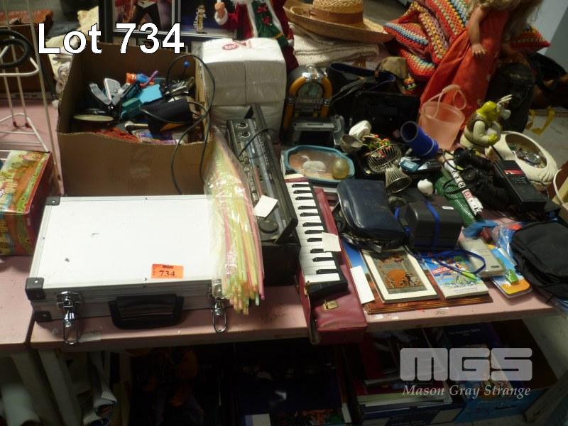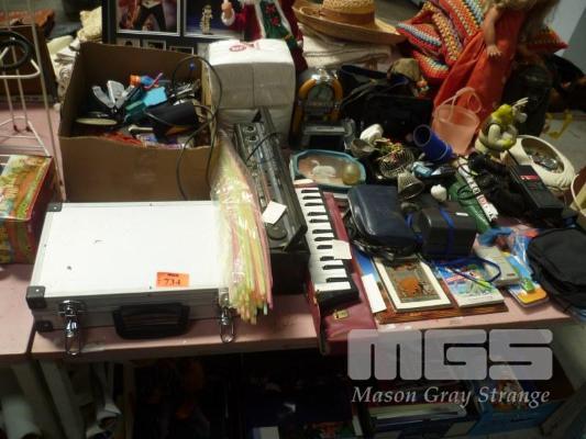 BINOCULARS, POLAROID CAMERA, HOHNER MOUTH ORGAN, ETC, 1 x TABLE