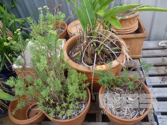PALLET OF TERRACOTTA POTS SOME WITH PLANTS