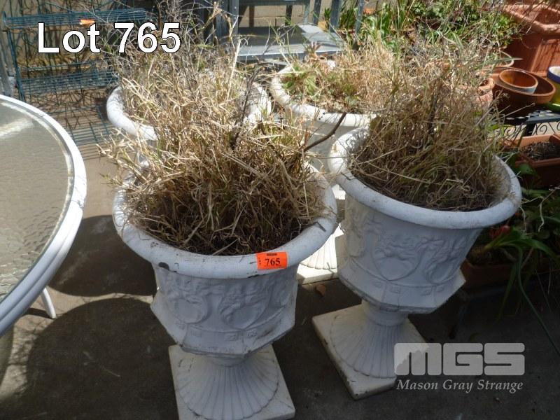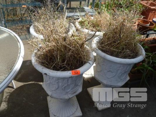 4 X WHITE PAINTED CONCRETE GARDEN POTS