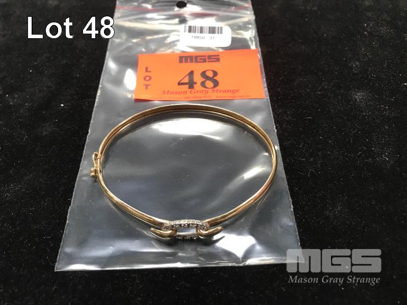 LADIES GOLD BANGLE SET WITH DIAMOND CHIPS, MARKED 9K, 5.06gm