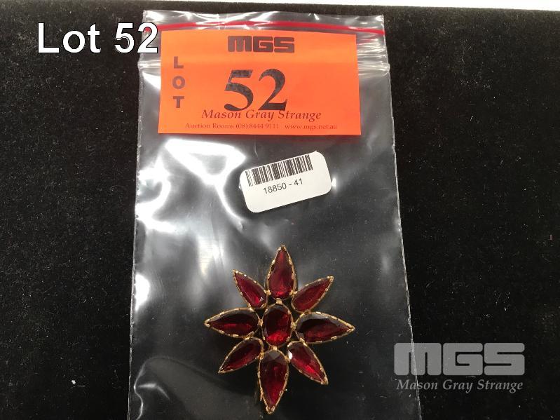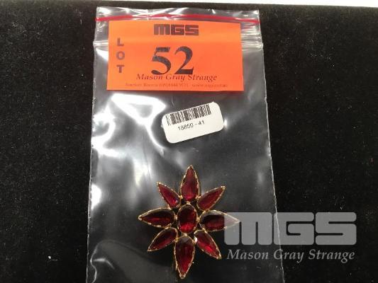 GOLD & RUBY FLORAL BROOCH, MARKED 375 11.71gm TOTAL WEIGHT