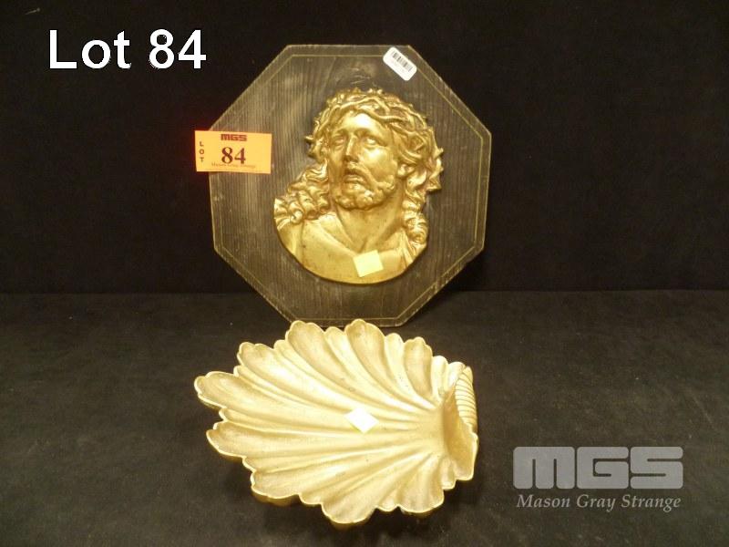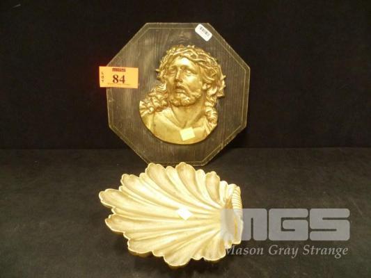 BRASS BOWL & PLAQUE DEPICTING JESUS