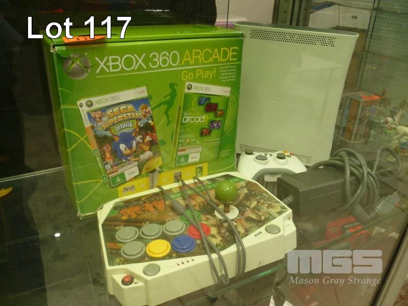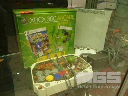 XBOX 360 CONSOLE IN BOX WITH ARCADE CONTROLLER