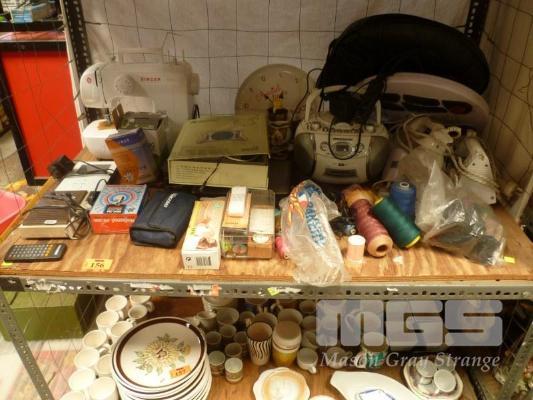 SINGER START SEWING MACHINE, SEWING ACCESSORIES, PORTABLE STEREO, IRONS ETC