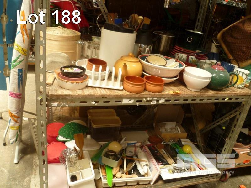ASSORTED KITCHENWARE, DINNERWARE, CUTLERY, UTENSILS, ETC, 2 x BAYS