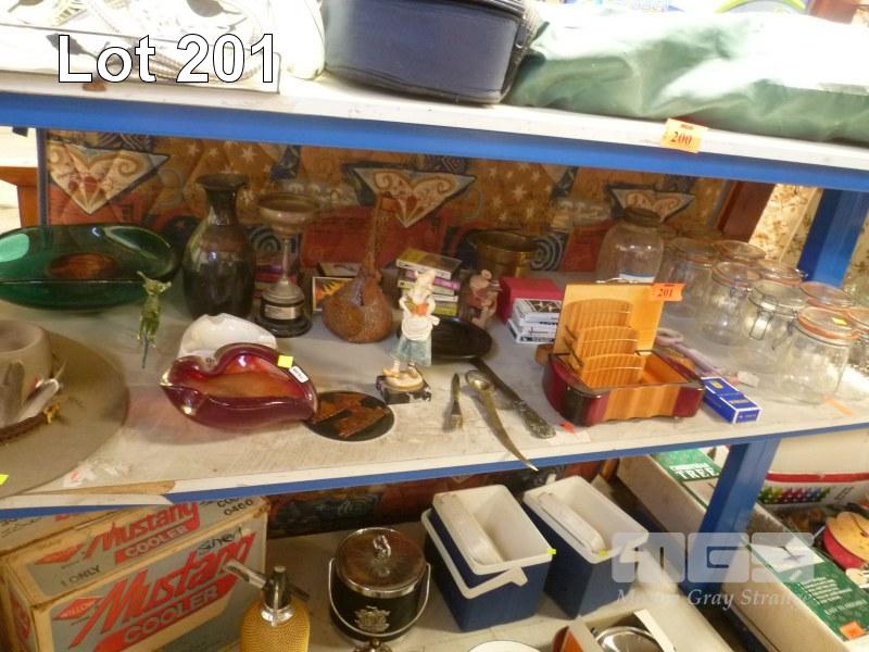 TIMBER CIGARETTE HOLDER, MUSIC BOX, WILD RIVER MARINO WOOL HAT, ASHTRAYS, GLASS JARS, CASSETTES, ETC