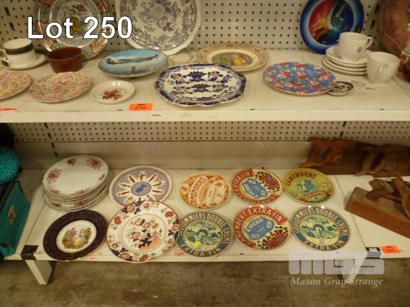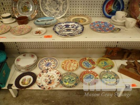 ASSORTED DISPLAY & DINNER PLATES, 2 x SHELVES