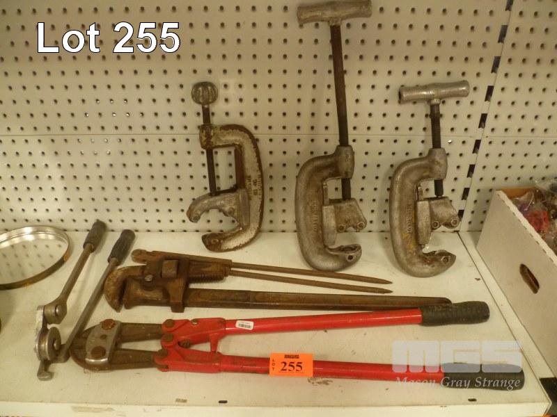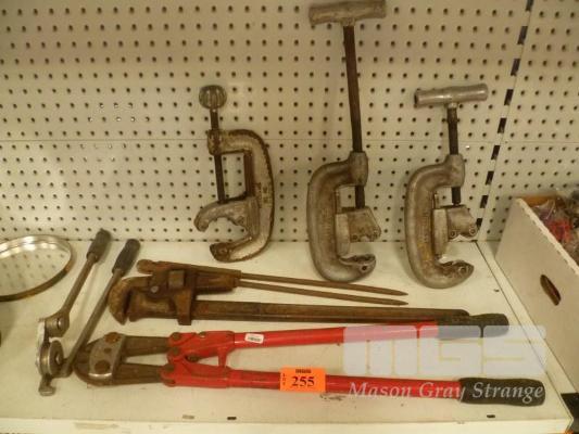 PIPE WRENCH, PIPE BENDER, 3 x PIPE CUTTERS & BOLT CUTTER