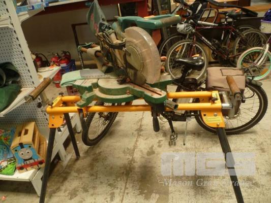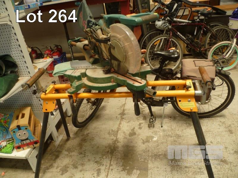 BOSCH ELECTRIC COMPOUND MITRE SAW, 254mm, MODEL: PCM 1800SD, 1800 WATT, 240 VOLT, ON STEEL ROLLER STAND, 2050mm EXTENDED