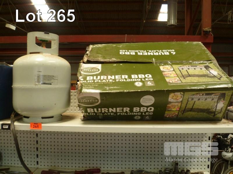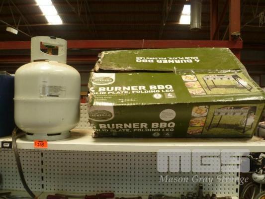 JACKAROO 4 BURNER BBQ WITH FOLDING LEG, NEW OLD STOCK, (NEVER BEEN OUT OF THE BOX), GAS BOTTLE & ATTACHMENT