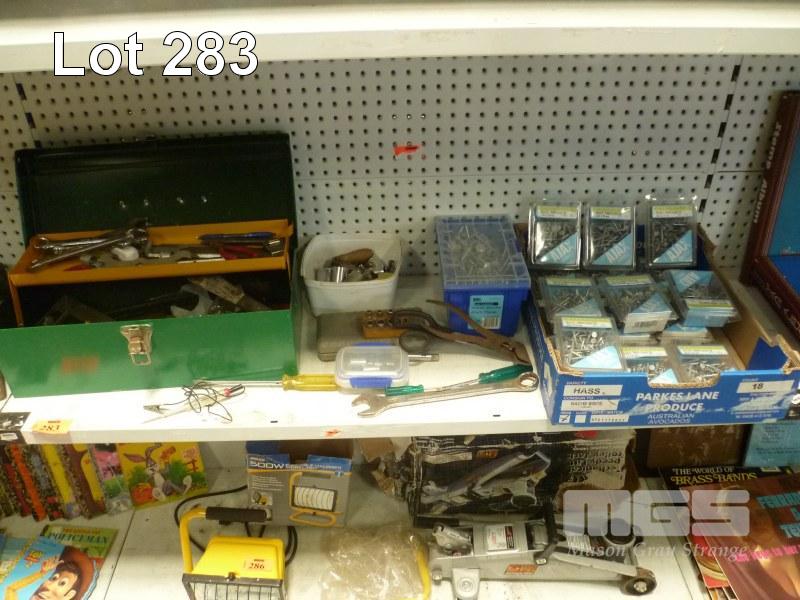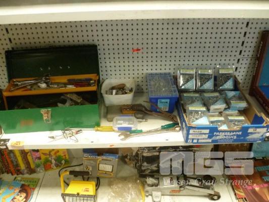16 x AJAX (NOS) NAIL PACKS & 1 x BOX ROOF NAILS, TOOL BOX & CONTENTS, SOCKETS, SPANNERS, ETC