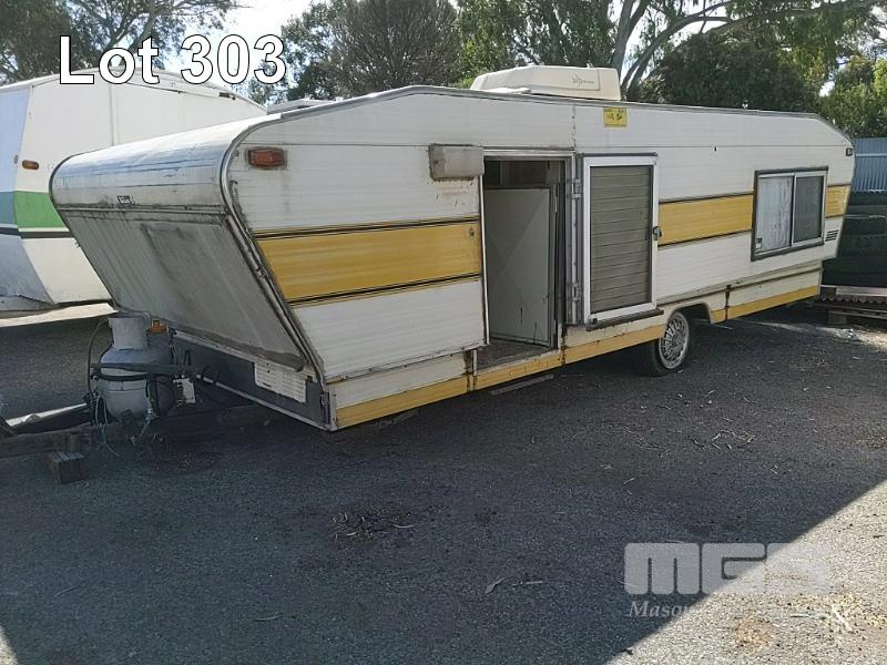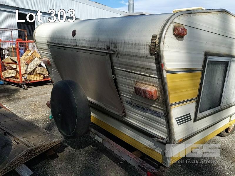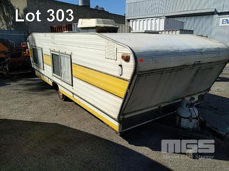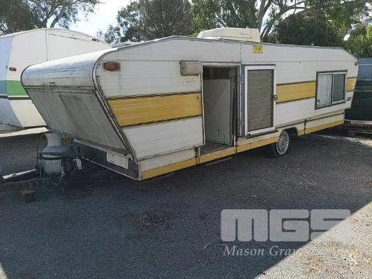 1984 PRATTLINE LO-TOW POP TOP CARAVAN 16 FOOT REG: TYV471 VIN: 412951 CREAM DUCO, 1 DOORS, INTERNAL FEATURES INCLUDE, 3 WAY REFRIGERATOR, 2 BURNER GAS STOVE & CHEF RANGER OVEN, 2 X SINGLE BERTH BEDS, LIGHTING & AIR CON, RADIO, FOLD OUT TABLE, CORNER LOUNGE, INTERNAL STORAGE, FIRE EXTINGUISHER, GAS & ELECTRICAL CONNECTION, SPARE WHEEL, ANNEX (NO PAPERS, NO OWNER'S MANUAL, NO SERVICE BOOKS) CONDITION: HYDRAULIC SYSTEM TO LIFT - NOT OPERATIONAL