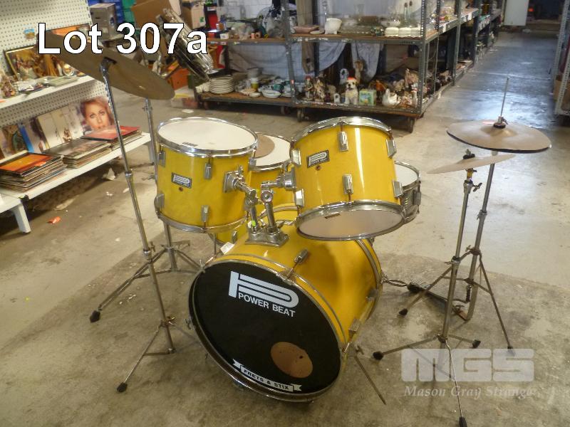 POWER BEAT DRUM KIT (INCOMLETE - NO KICK PEDDLE - SURFACE RUST ON CHROME)