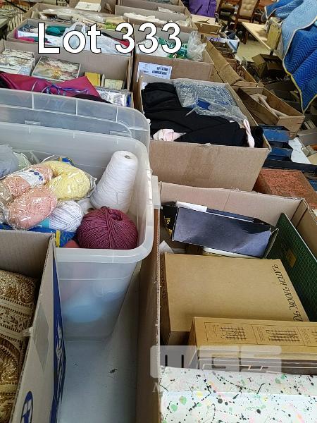ASSORTED SEWING & CRAFT SUPPLIES INCLUDING FABRIC, YARN AND WOOL, STITCHING PATTERNS AND MUCH MORE (9 x BOXES & TUBS)