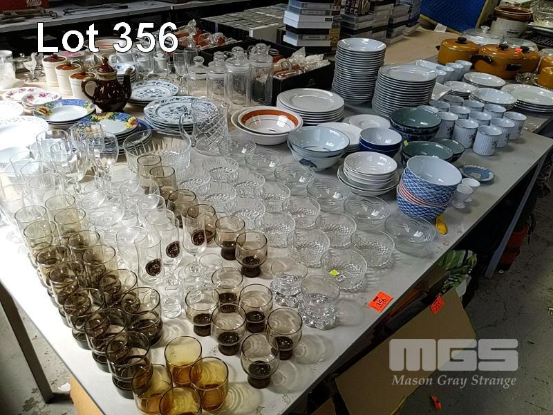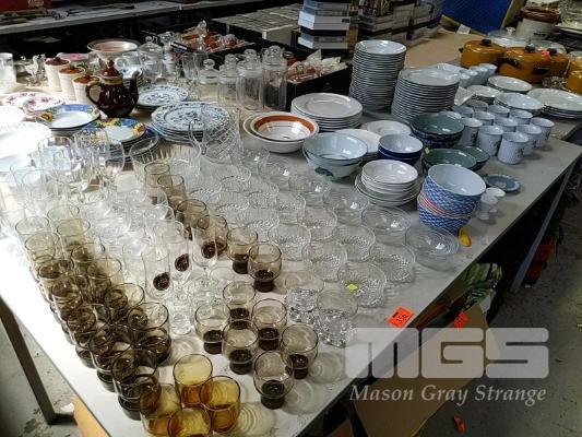 ASSORTED GLASSWARE, DINNERWARE, & CUPS, 1 x TABLE
