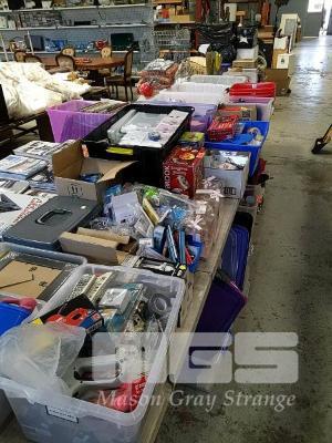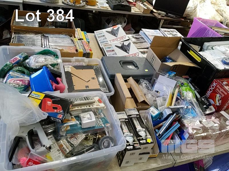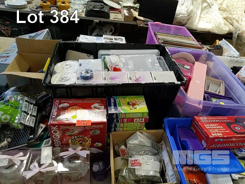 LARGE COLLECTION OF MOSTLY NEW HOMEWARES, HARDWARE, ARTS AND CRAFT, HOME OFFICE SUPPLIES, ELECTRICAL AND MUCH MORE (2 x TABLES - TOP & UNDER)