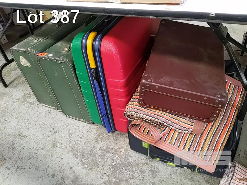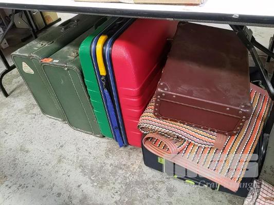ASSORTED SUITCASES, INC VINTAGE WITH PLASTIC WEAVE MATS