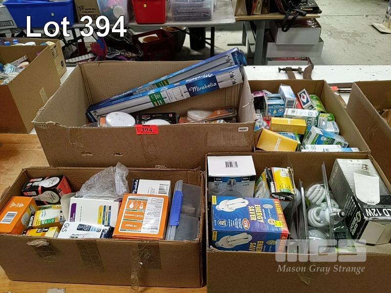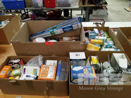 A COLLECTION OF ASSORTED HOUSEHOLD LIGHT GLOBES, SMOKE ALARMS ETC (4 x BOXES)
