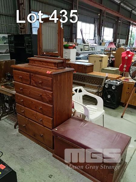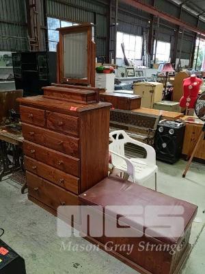 6-DRAWER CHEST OF DRAWERS, MIRROR UNIT AND WOODEN STORAGE CHEST