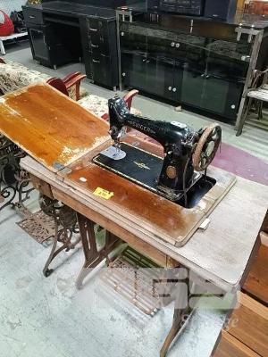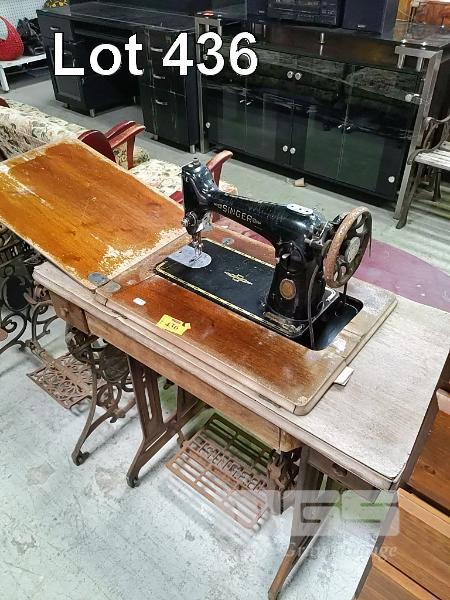 VINTAGE SINGER SEWING MACHINE IN TREADLE SEWING CABINET WITH VINTAGE GRIFFIN TREADLE SEWING CABINET, METAL FRAME ONLY
