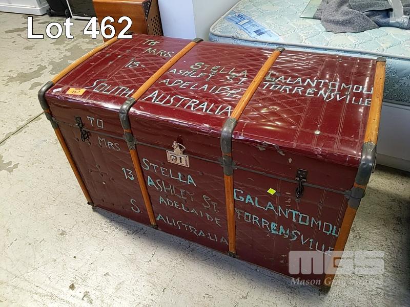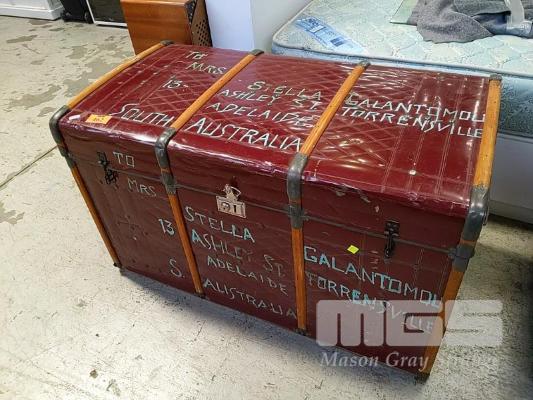 BURGUNDY METAL CLAD TRAVEL TRUNK