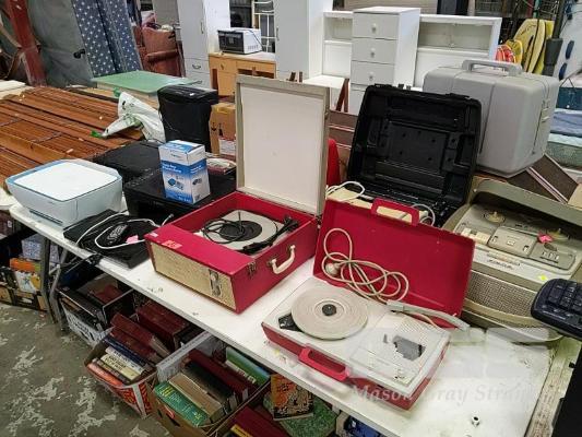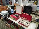 ASSORTED PRINTERS, BROTHER TYPEWRITER, PORTABLE PHONOGRAPHS, REEL TO REEL PLAYER, ANALOGUE TV, ETC, 1 x TABLE