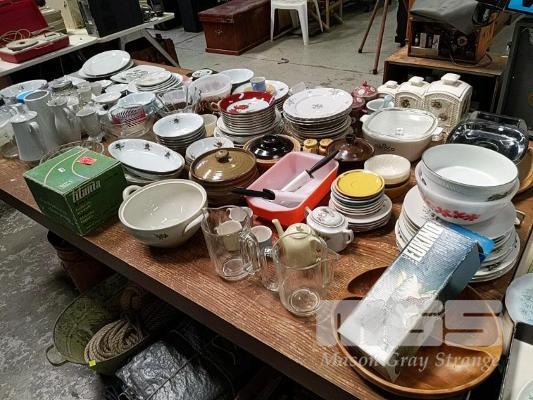 ASSORTED DINNERWARE, BOWLS, CERAMICWARE, ETC, 1 x TABLE