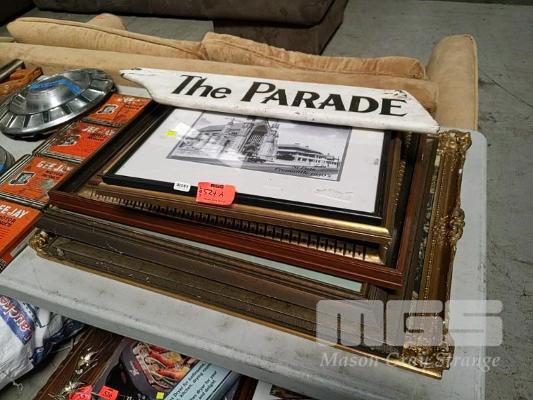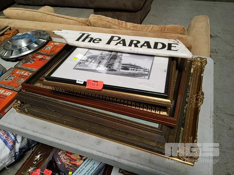 ASSORTED FRAMED PICTURES, PAINTINGS, THE PARADE STREET SIGN, ETC