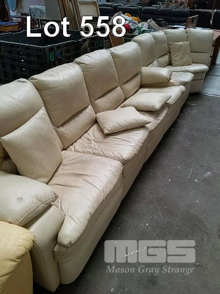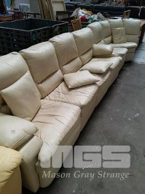 6-PIECE MODULAR LEATHER CORNER LOUNGE SUITE IN BEIGE WITH RECLINING END PIECES