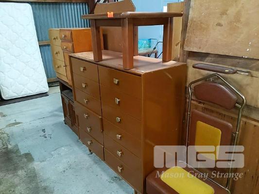 6 x PIECES FURNITURE, VALET CHAIR, CHEST OF 12 DRAWERS, SQUARE COFFEE TABLE, ENTERTAINMENT UNIT & 2 x BEDSIDE CABINETS