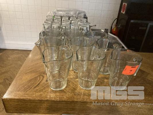 11 x GLASS JUGS & 20 x BEER GLASSES, 425ml