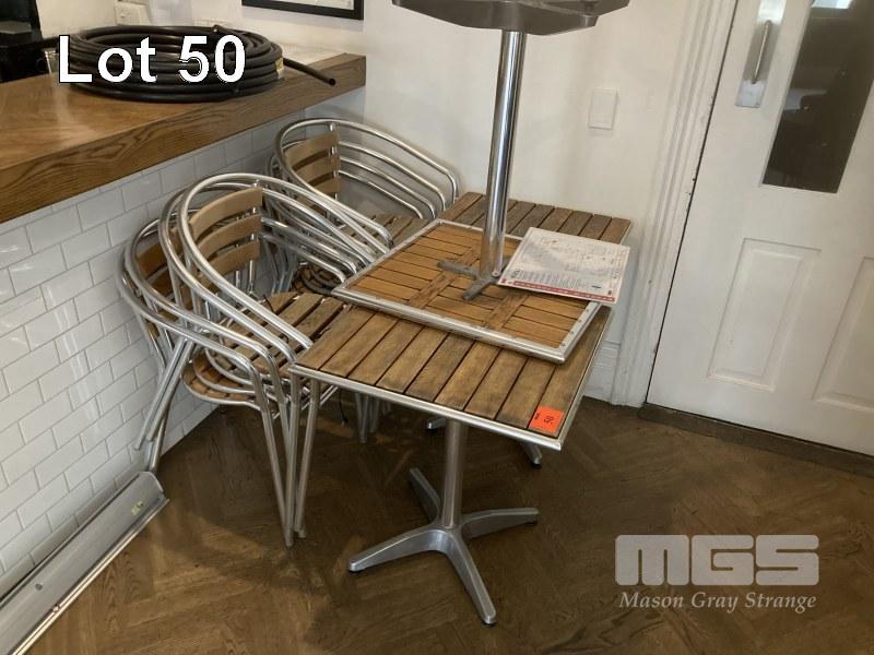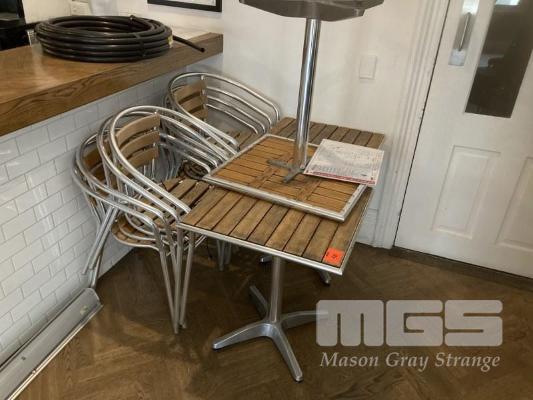 3 x OUTDOOR TABLES, 60 x 60cm, ALUMINIUM FRAME/TIMBER SLAT & 8 x MATCHING CHAIRS