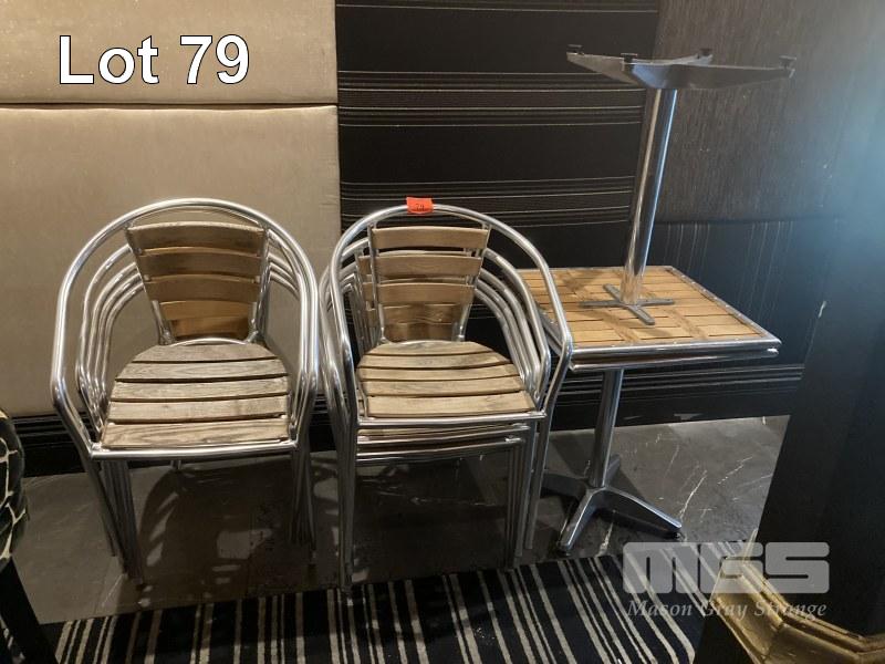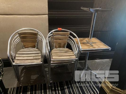 2 x OUTDOOR TABLES, 60 x 60cm, ALUMINIUM FRAME/TIMBER SLAT & 11 x MATCHING CHAIRS