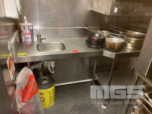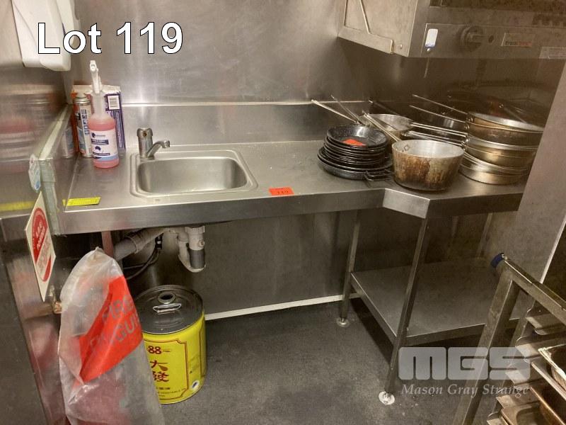 STAINLESS STEEL CORNER BENCH, 190 x 60cm, WITH HAND BASIN