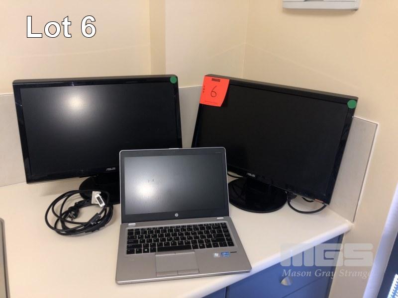 LAPTOP COMPUTER, HP, ELITE BOOK FOLIO 9470M CORE i7 PROCESSOR WITH 2 x ASUS 21" LCD MONITORS