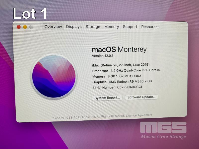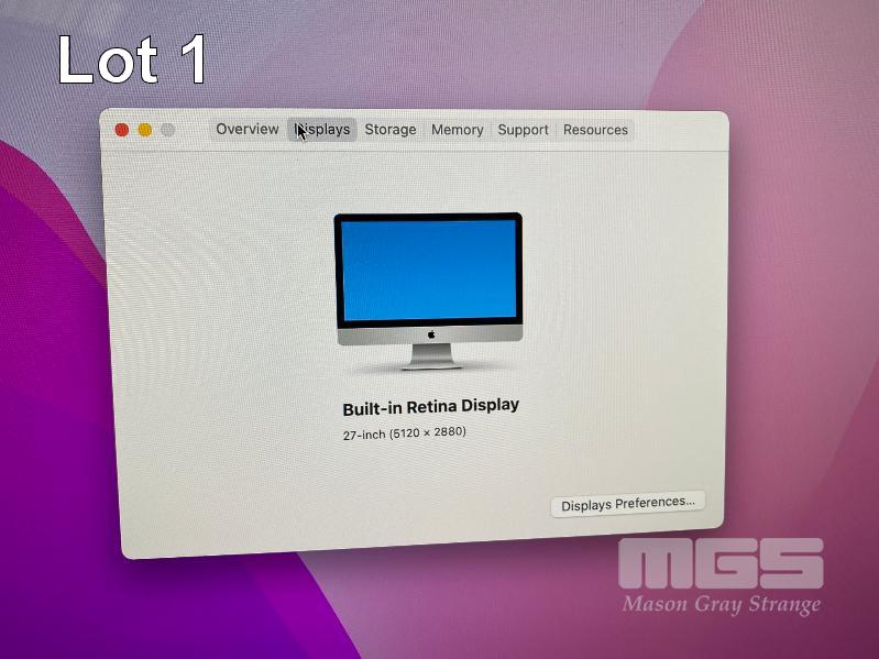 APPLE iMAC (A1419), CORE i5 6500 (6TH GEN) @ 3.2GHz, 8GB DDR3 RAM, 1TB SATA HDD, BUILT-IN 27" RETINA 5K DISPLAY (5120x2880), 2GB AMD RADEON R9 M380 VIDEO, Wi-Fi, MAC OS 12 INSTALLED (NO KEYBOARD, NO MOUSE) S/N:C02R90A0GG7J