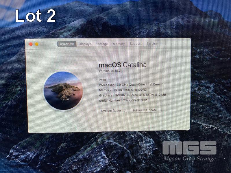 APPLE iMAC (A1419), CORE i5 3470S (3RD GEN) @ 2.9GHz, 16GB DDR3 RAM, 500GB SSD, BUILT-IN 27" DISPLAY (2560x1440), 512MB NVIDIA GEFORCE GTX 660M VIDEO, Wi-Fi, MAC OS 10.15 INSTALLED, KEYBOARD & CORDLESS MOUSE S/N:C02KF3XZDNCV