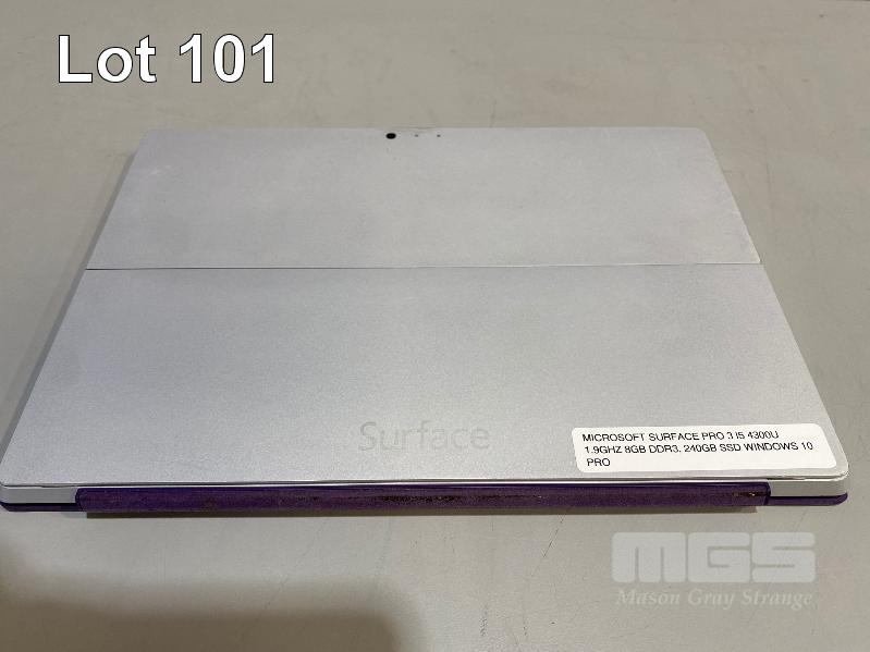 TABLET PC, MICROSOFT SURFACE PRO 3, MODEL 1631, CORE i5 4300U (4TH GEN) @ 1.9GHz, 8GB RAM, 256GB SSD, 12" TOUCHSCREEN, Wi-Fi, WINDOWS 10 PRO INSTALLED, KEYBOARD TYPE COVER & POWER SUPPLY S/N:004698145063