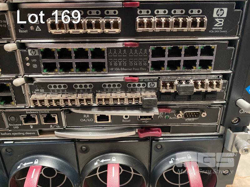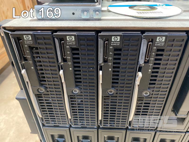 HP BLADESYSTEM c7000 ENCLOSURE WITH 4 x HP PROLIANT BLADE SERVERS - HP PROLIANT BL490c G7, 2 x XEON X5675 @ 3.06GHz, 96GB ECC DDR3 RAM (12x8), NO HDD WITH RAILS & 3 x 15A POWER CABLES S/N:SGH843YPT5