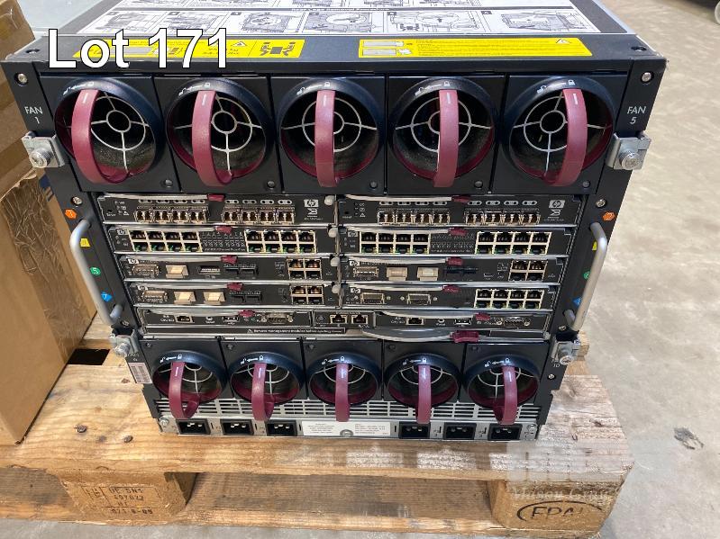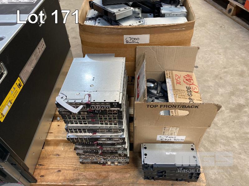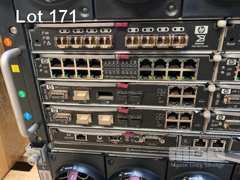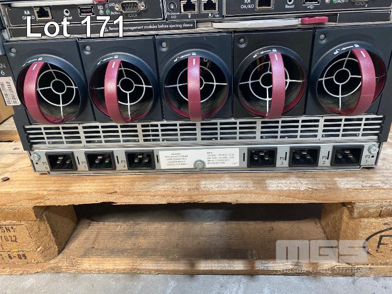 HP BLADESYSTEM c7000 ENCLOSURE WITH 3 x HP PROLIANT BLADE SERVERS - HP PROLIANT BL460c G7, XEON L5640 @ 2.26GHz, 12GB ECC DDR3 RAM, 2 x 146GB SAS HDD - HP PROLIANT BL460c G7, XEON E5640 @ 2.67GHz, 12GB ECC DDR3 RAM, 2 x 146GB SAS HDD - HP PROLIANT BL460c G6, 2 x XEON X5650 @ 2.67GHz, 48GB ECC DDR3 RAM, 2 x 146GB SAS HDD (NO 15A POWER CABLES) (MISSING 1 x PSU) WITH ASST SPARE MODULES & FILLERS S/N:SGH836YLV6