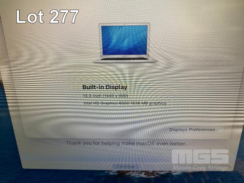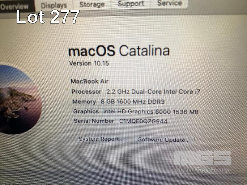 LAPTOP, APPLE MACBOOK AIR (A1466), CORE i7 5650U (5TH GEN) @ 2.2GHz, 8GB DDR3 RAM, 512GB SSD, 13.3" WIDESCREEN (1440x900), INTEL HD VIDEO, Wi-Fi, MAC OS 10.15 INSTALLED & POWER SUPPLY S/N:C1MQF0QZG944