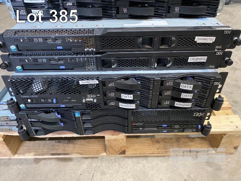 2 x IBM DS3400 STORAGE ARRAYS, VARIOUS HARD DRIVES INC. 1TB, 146GB, 300GB, 450GB, 2 x IBM SYSTEM x3250, XEON SERVERS, 1 x IBM SYSTEM x3650 XEON SERVER, 1 x IBM xSERIES 346 XEON SERVER (NO CABLES) S/N:99A1607, 99A1583, 99C7246, 99DCWD4
