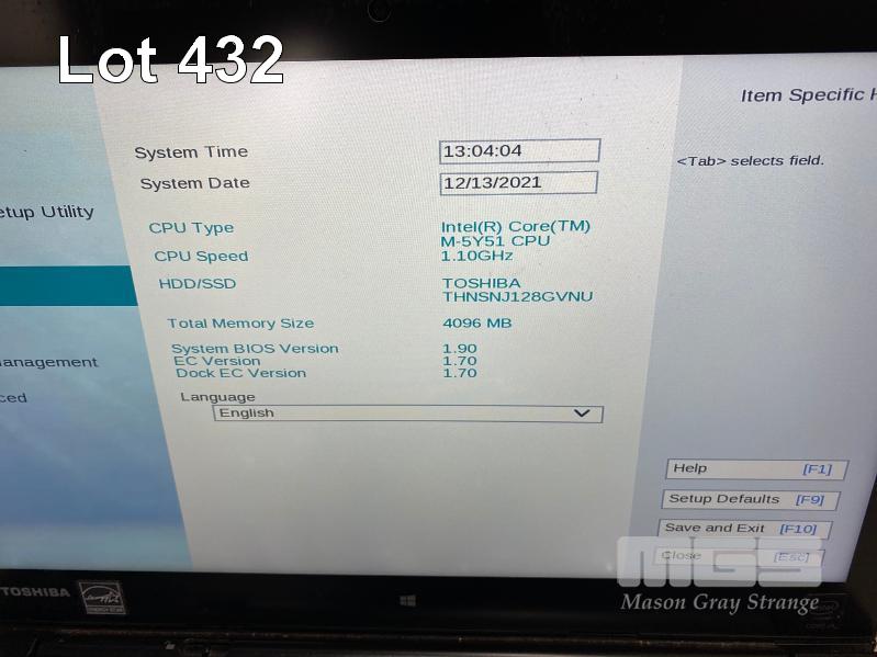 TABLET PC, TOSHIBA PORTEGE Z20t (PT15AA-00U009), CORE M-5Y51 @ 1.1GHz, 4GB DDR3 RAM, 128GB SSD, 12.5" TOUCHSCREEN (1920x1080), Wi-Fi, BLUETOOTH, WINDOWS 10 PRO INSTALLED & KEYBOARD DOCK (NO POWER SUPPLY) (NOTE: MARKS ON SCREEN) S/N:5G090394H