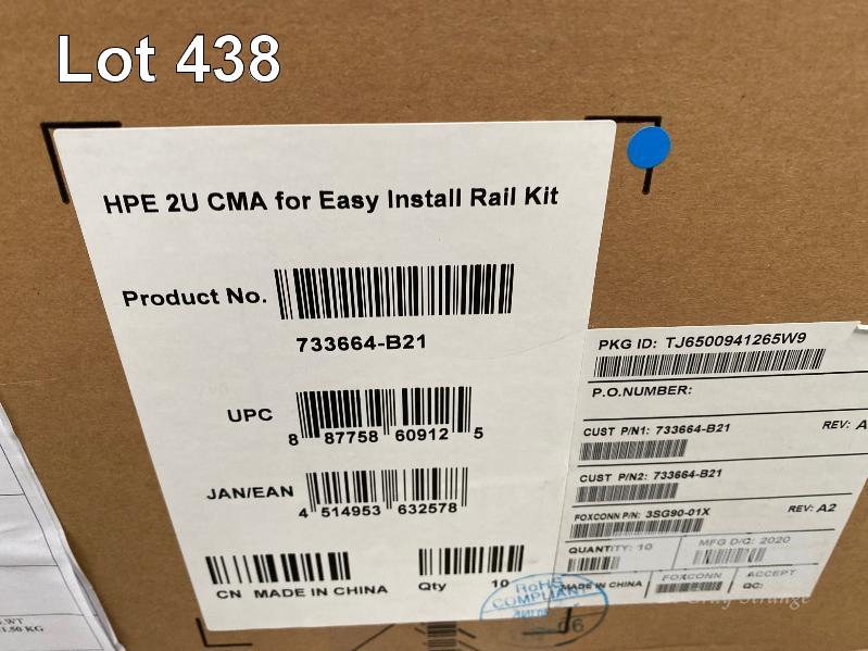 1 x BOX HP 1U BLACK UNIVERSAL 100-PK FILLER PANELS, BW929A 1 x BOX HP 2U CMA FOR EASY INSTALL RAIL KIT, 733664-B21 2 x BOXES HP JB BAYING KITS, BW902A (ALL SEALED IN BOX)