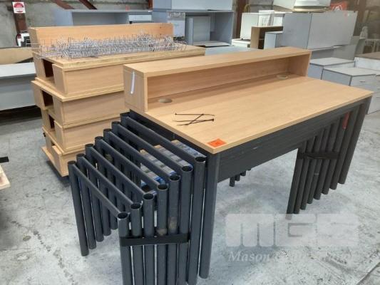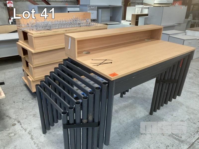 8 x TABLES, 150 x 70cm, BEECH LAMINATE WITH HUTCH