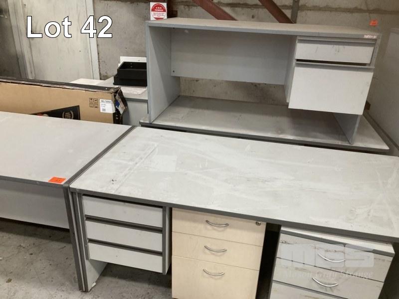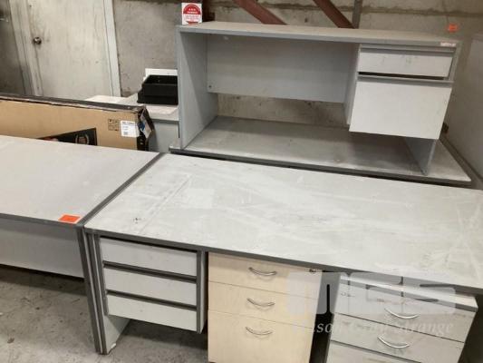 4 x DESKS & CREDENZA, GREY LAMINATE & 2 x MOBILES