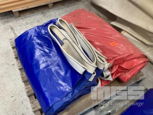 2 x PVC TARPS, 12 x 4.5m (APPROX), RED & BLUE