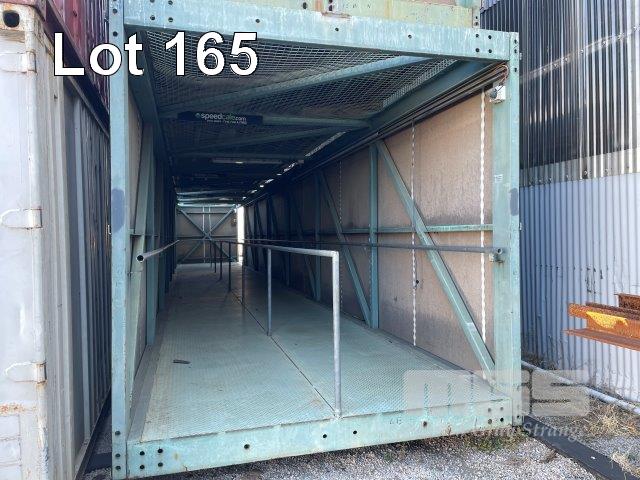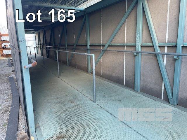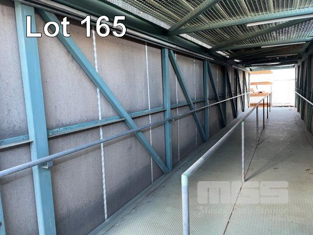 CONSTRUCTED STEEL WALKWAY 19.1m (L) 2.7m (W) 2.8m (H) C CHANNEL CONSTRUCTION, MESH ROOF BRACED INTERNALLY CHECKER PLATE FLOOR & HAND RAIL BUILT BY MIKE STANKO FABRICATIONS (LOCATED AT 540 CHURCHILL RD, KILBURN, LIFTING AT BUYERS COST)