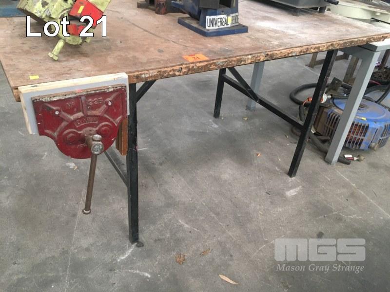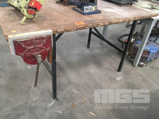 WORK BENCH, 160 x 90cm, TIMBER TOP, WITH 3 x DAWN 10" VICES